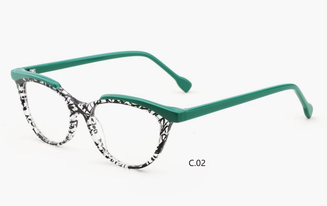 Col-01 BLACK TORTOISE SHELL CRYSTAL, Col-02 GREEN BLACK STRIPE, Col-04 Purple